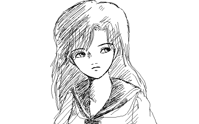 「大人っぽい高校生」を描いてみたいと思って、試したものです。 最近は子供っぽい高校生の方が少なくなっているような気がしますが、なんだか単に「水っぽい」(こら)女子高生がやたらと目につく中で、ふっと本当に大人びた表情を見せる人がいると、こちらはハッとしてしまいます。 「じょしこーせー、じょしこーせー」と騒がれるのは当の女子高生たちにとっては迷惑だと思いますが、それでもやっぱり「女学生」は永遠のテーマなのです。(力説するな)